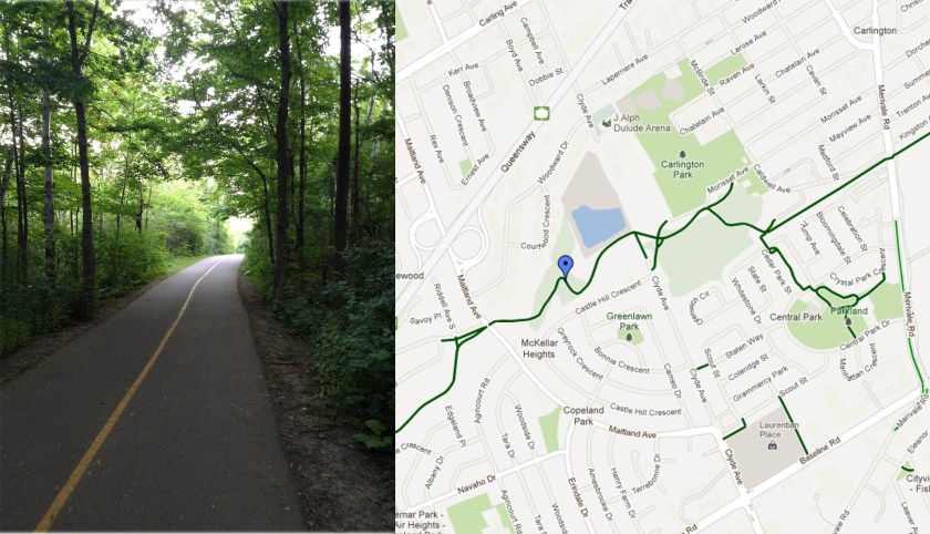 After crossing Merivale Road the path then climbs up and down through a wooded section, until it reaches Maitland Avenue.