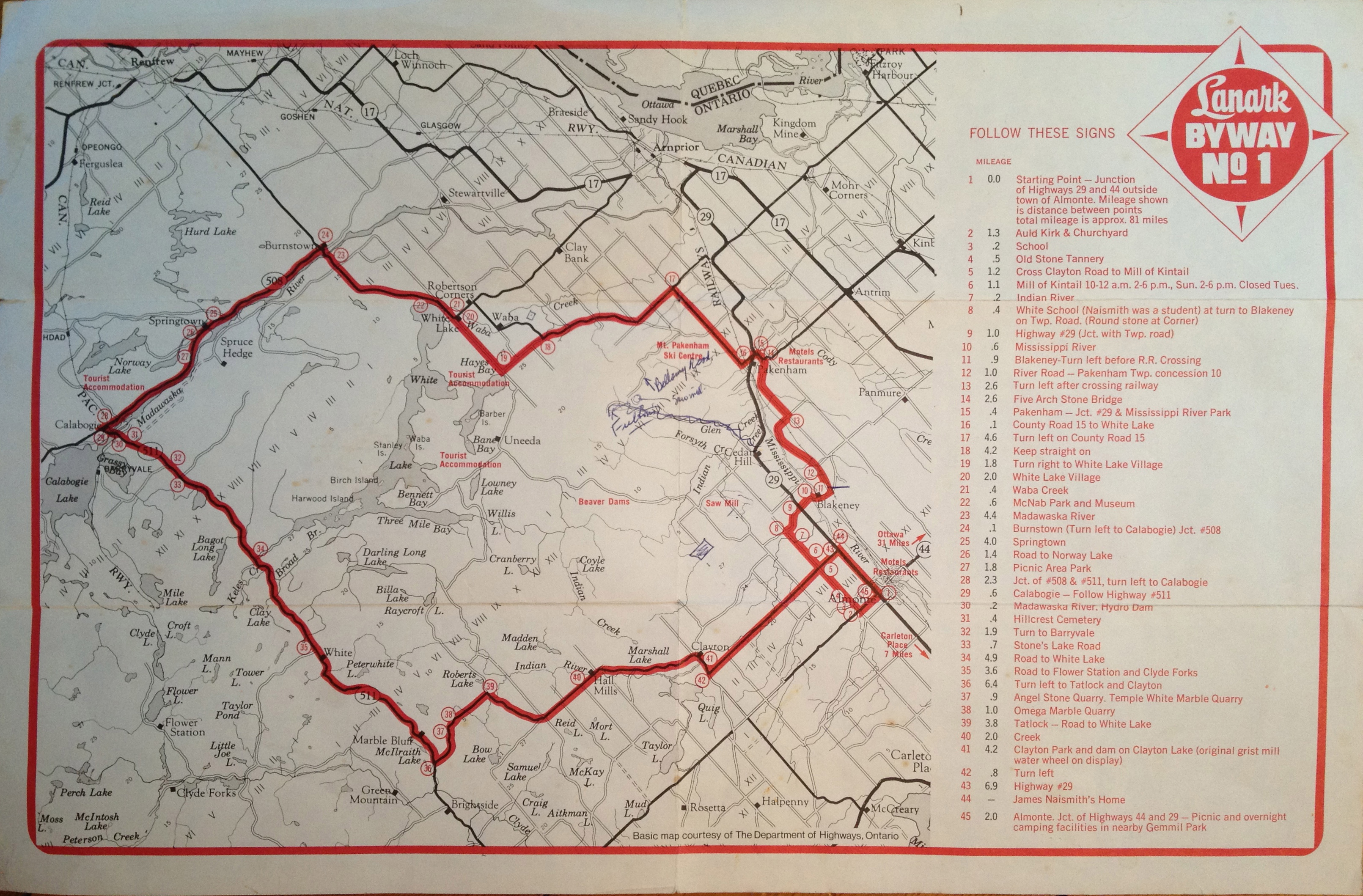 At the cottage I came across this great 1960’s tourist road map brochure. I love the graphics. Coincidently the route corresponds alot to this Bikely route I used to help me plan my route.