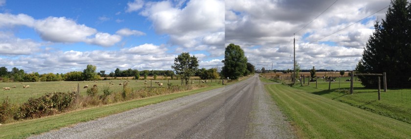 I biked along a combination of hard packed dirt and paved roads from the Hazeldean/Spruce Ridge intersection as far as March Road. This shot is a good indication of the surrounding scenery. LOTS of square timber houses along the way.