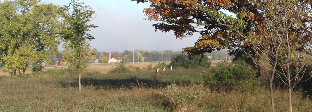 Just before the bridge over the Trans Canada Highway, three deer ran beside me for about a hundred yards before turning away from the road. See those white bums in the distance? That’s them.