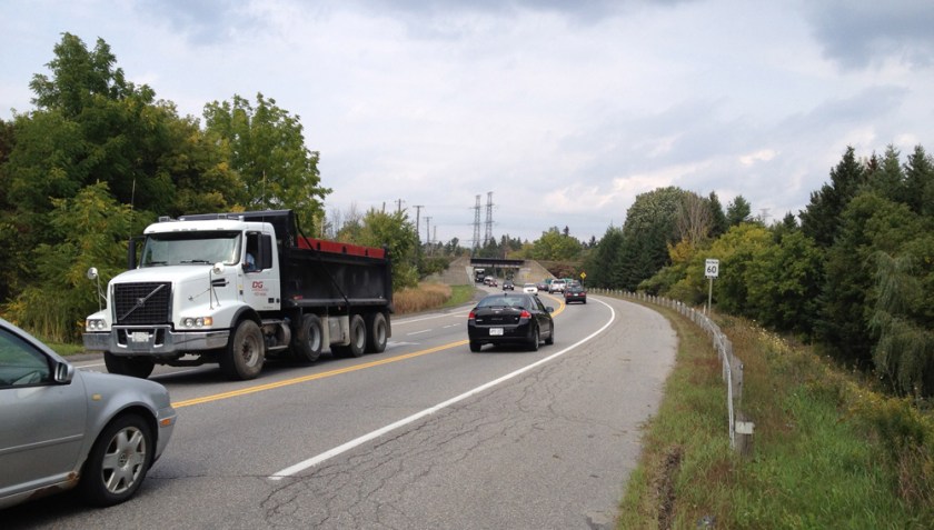 March Road has a narrow shoulder and fast moving cars, so it might be a wiser choice to continue down Old Almonte Road and weave your way west along quieter streets to Almonte.