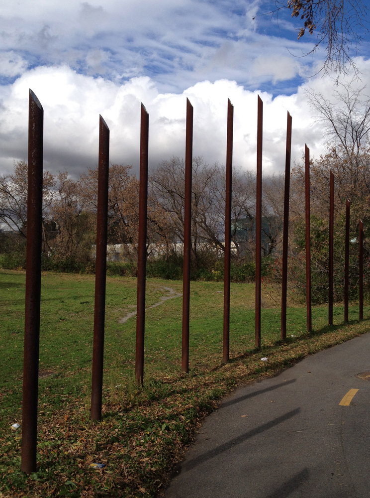 On one side of the path, just before it slips under Boulevard des Alummettières, sit these elegant, simple and effective demarcation posts.