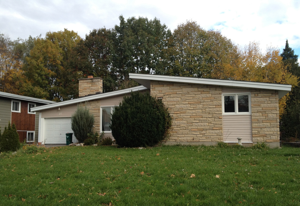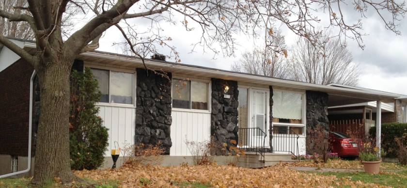 The streets I visited just south of Boulevard Mont Bleu are filled with a great mix of housing styles from the fifties and sixties. One intriguing period style I’ve come across throughout the region has big black rocks set into the facade like so.