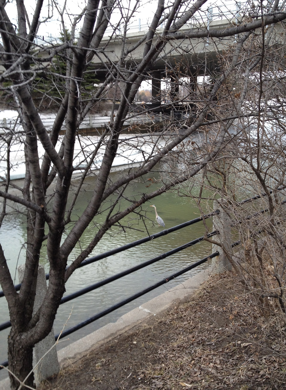 And here’s a blue heron standing in the canal under the Bronson street bridge.