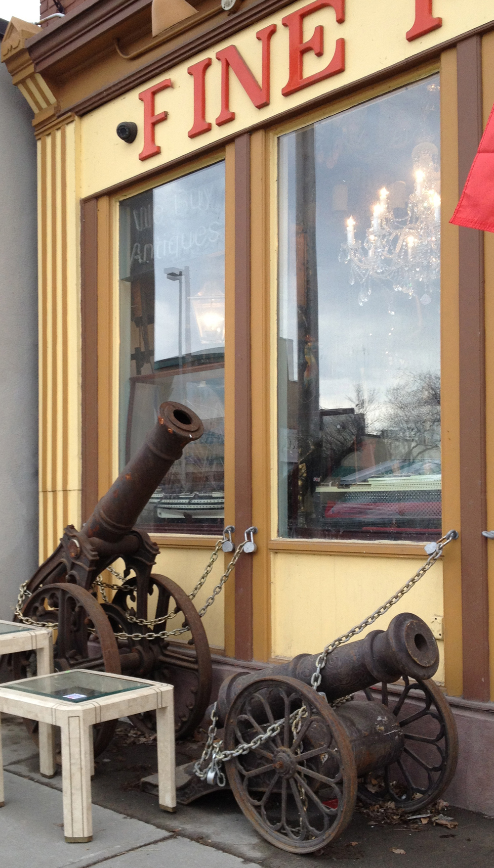 Outside Yardley’s Antiques on Bank street these cannons are available for those who wish to purchase their own pieces of old artillery.
