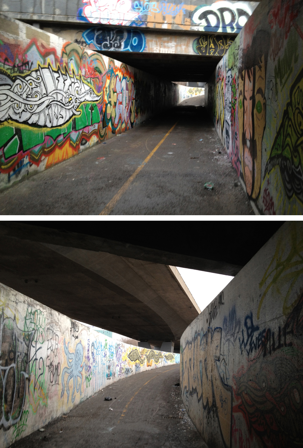 The path dips under a number of major bridges with lots of commuter traffic, the sounds of which lend themselves well to the recording.