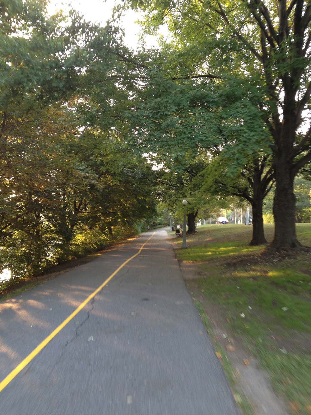 Now the next trick is finding a safe way to the recreational path along Mooneys Bay, which primarily means avoiding riding along Hunt Club Road, Riverside Drive and Walkley Road, all very busy, not very bike friendly roads. Here’s how: Continue along Uplands across Hunt Club. Turn right on Cahill Drive West and then left on Twyford Steet. Than cut through to Annapolis along this short path.