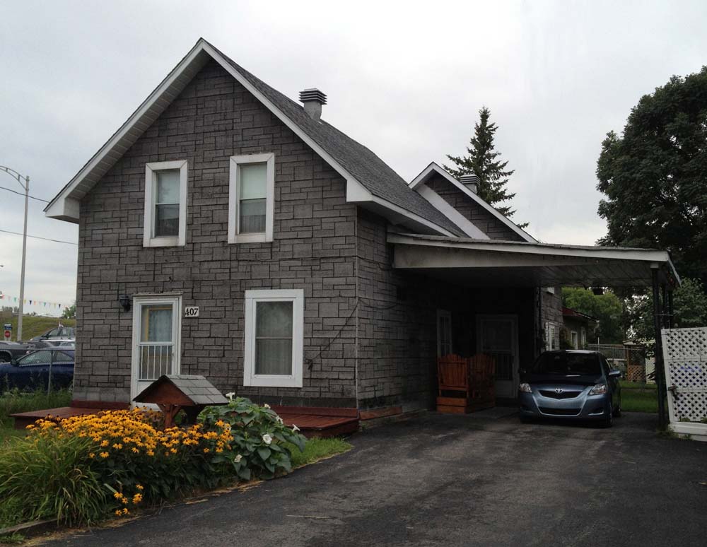 InsulBrick is a tar coated fibreboard siding introduced in the 1930’s which remained popular up to and through the 1960’s. It has a slightly embossed stone or brick pattern and added granular material on the outer surface. It hasn’t been manufactured since the early 70’s, so what’s out there is the original material. All surviving examples show signs of aging, some gracefully, others, some may argue, not so much. Regardless, all suggest a rich history of protecting generations of occupants through many decades. Here’s a tour of dwellings that I’ve noticed in the area still wrapped in the stuff.