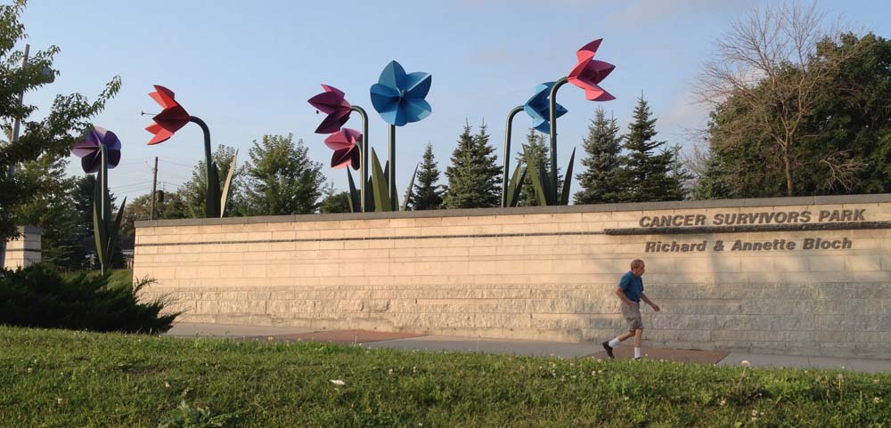 Continue along Industrial Avenue, past the giant metal flowers installed in Cancer Survivors Park.