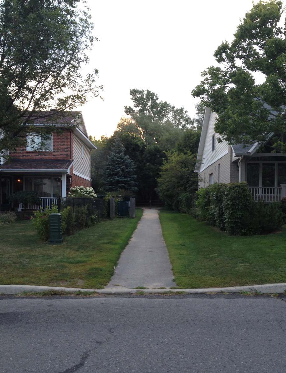 Turn left on Annapolis, left on McCarthy, left onto Southmore Drive West and finally left on Fielding Drive for just a short distance until you reach a short path on the right like so.