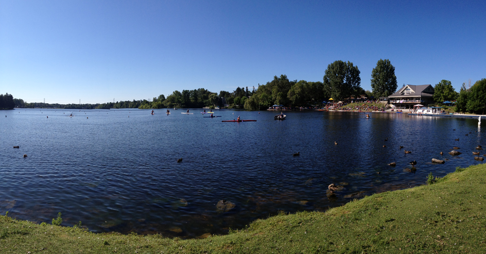 Cross Riverside to the path that takes you through Mooneys Bay. Continue along the path, cross the bridge over Hogs Back Falls, and, if you wish, check out a regatta.