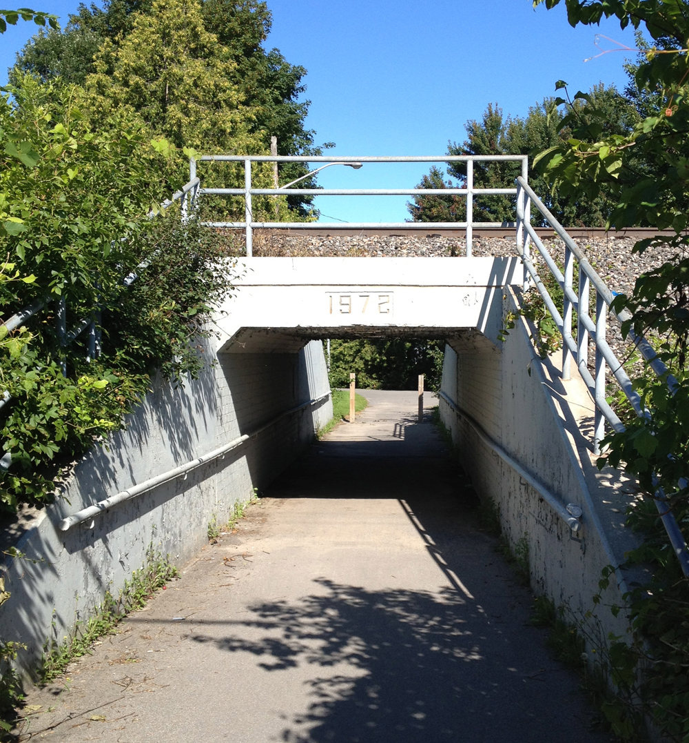 Cross under Hurdman Station and Continue straight on towards the Riverside Drive/ Industrial Avenue intersection. Now I won’t deny this is a spooky major vehicule intersection, however don’t let it intimidate you. There are usually many other pedestrians and cyclists crossing at this spot and the path does continue on the other side of Riverside Drive along Industrial Avenue.