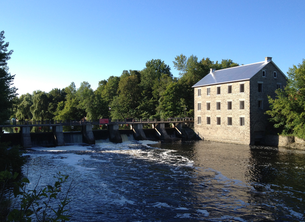 Once through the park carry on along West River Drive and cross Bridge Street on into AY Jackson Park, named after one of the Group of Seven painters who lived in Manotick for a spell. Ride on down the path to the great lookout over the river towards Watson’s Mill. Et voila – made it to Manotick!