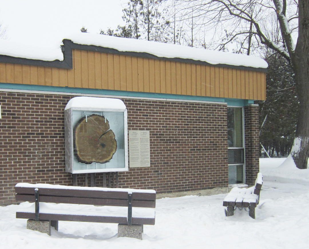 The neighbourhood of Champlain Park, located just west of Tunney’s Pasture, is home to some of the oldest forest born trees in Ottawa, including a number of magnificent bur oaks that are more than 200 years old. A recently installed interpretive exhibit on the exterior wall of the Champlain Park field house, titled ‘Trees as Witness to History’, displays a section of one Champlain Oak that grew along Northwestern Ave up until 2011. I highly recommend riding by and checking it out.