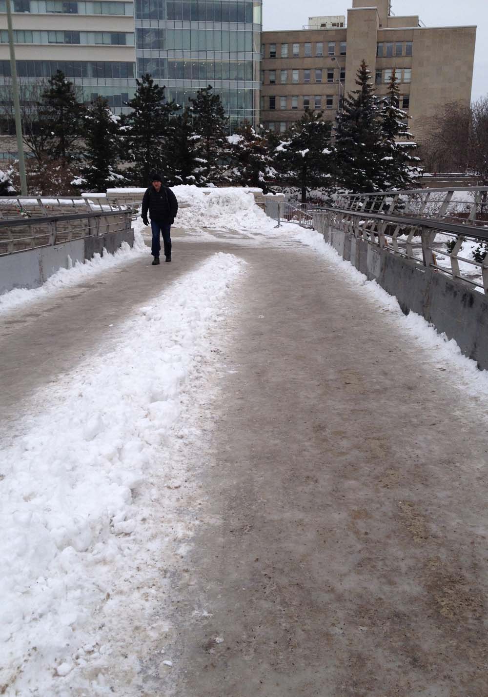 I turned off the pathway at the car-less bridge over the canal at the end of Somerset St W. Be careful crossing this bridge as it can be icy even with the spattering of sand strewn across its path.