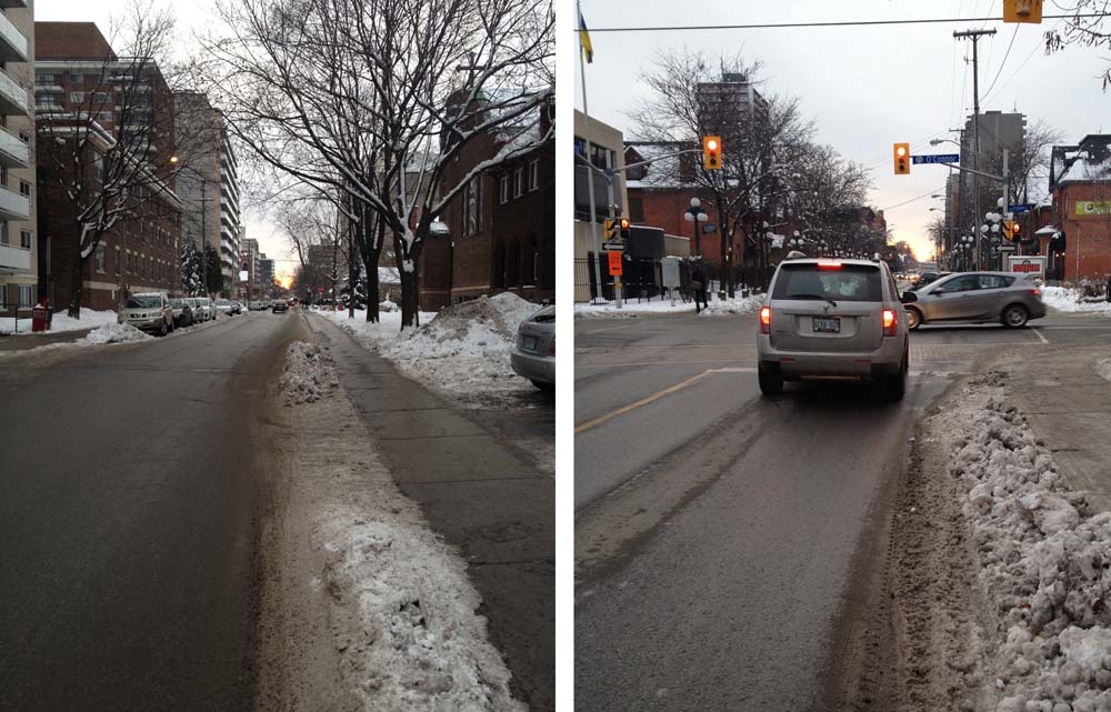 UPDATE Sept 2014 – the Laurier Bike Lane has been extended east of Elgin in front of the Provincial court house and City Hall.