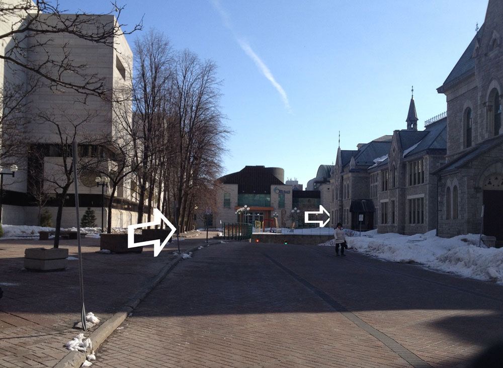 Across the Portage & Rue Laurier intersection ……… and along the path on the south side of Rue Laurier