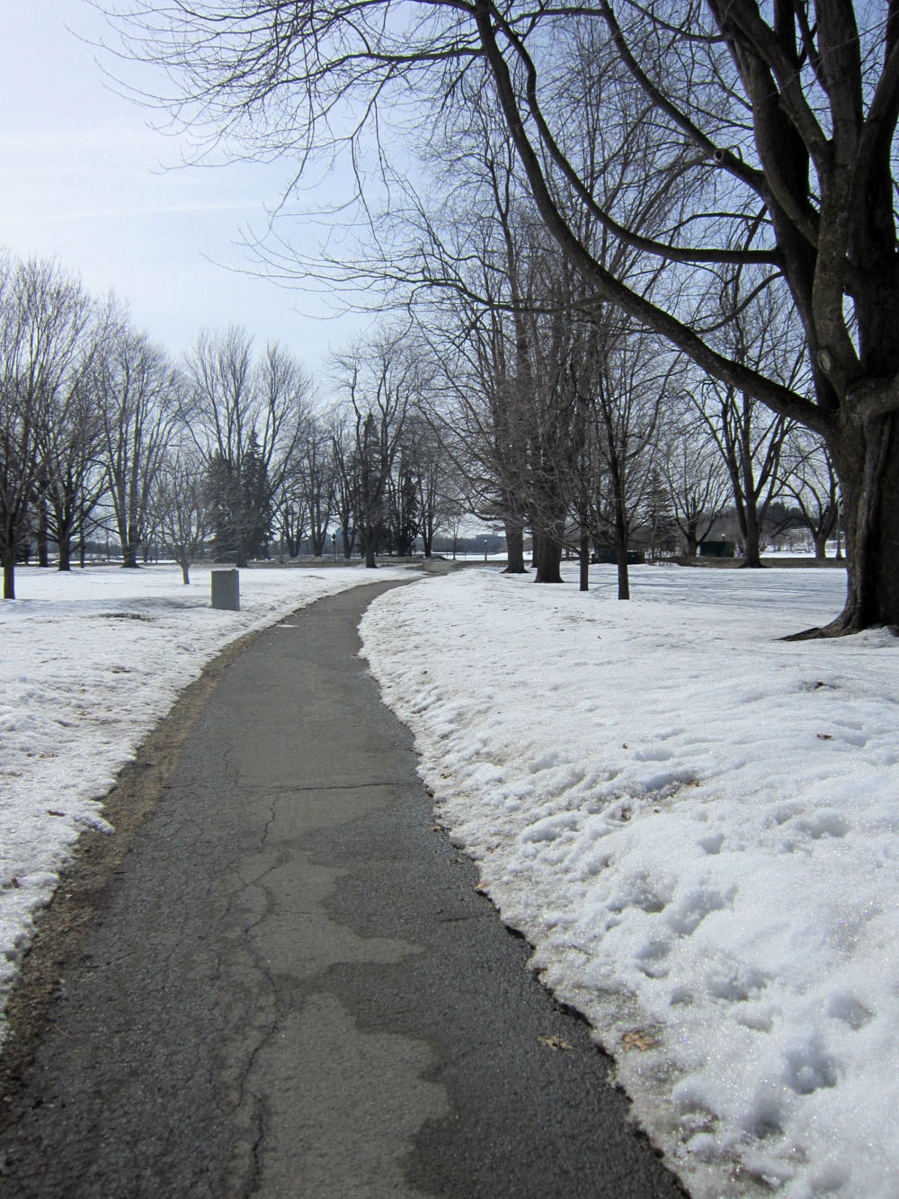 I followed the route described in this post in reverse with one minor change. Rather than ride diagonally across Commissioners Park from Booth and Carling to the corner of Preston and the Queen Elizabeth Driveway over a packed path, which is presently mush, I cut straight over to the Queen Elizabeth Driveway from Booth along a cleared path. Didn’t know they plowed this link. Then I followed the Recreational Pathway along Dows Lake to Preston & Queen Elizabeth.