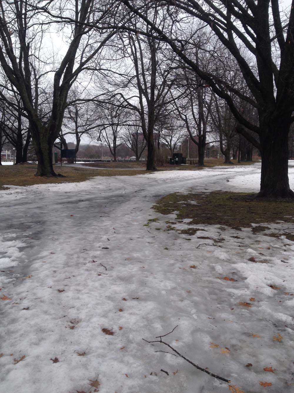 I was hoping the path through Commissioners Park from the end of Madawask would be clear. No such luck, but bike-able if you don’t mind the ice and slush.
