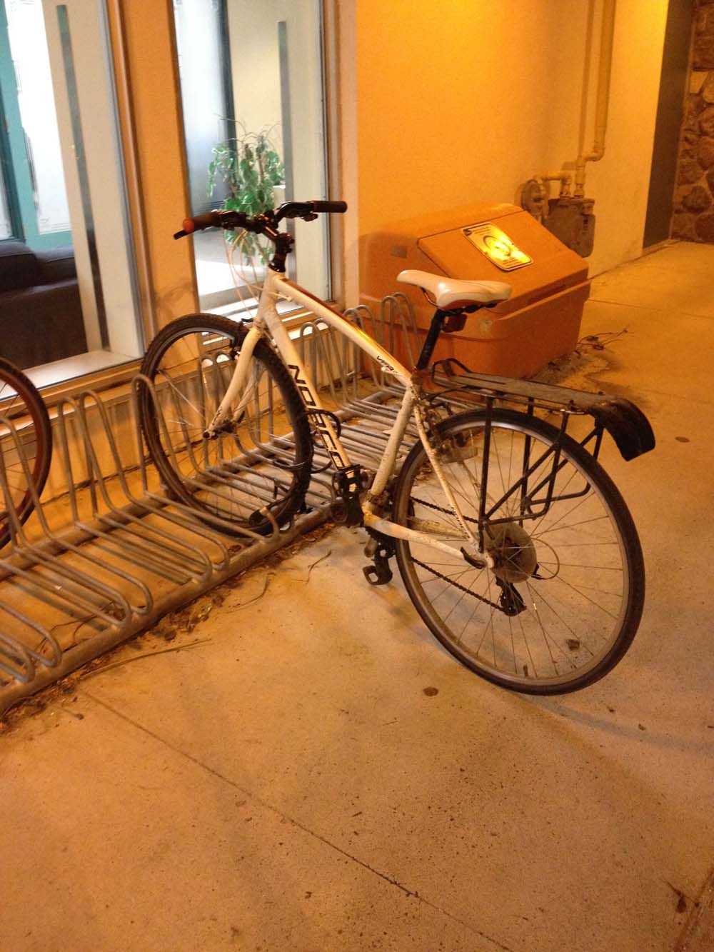 It’s best to access the community centre from the parking lot off of Sweetland. That’s close to where the life drawing workshop is held, and there’s a bike rack. Not my favorite kind of bike rack mind you, as it relies on your wheel versus your frame to stay up, but a bike rack none-the-less.
