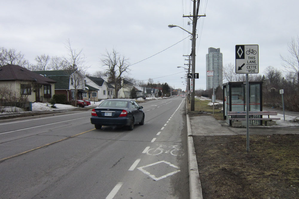 Nepean St is truncated just east of Percy St, but you can ride through the elementary school parking lot and down a short lane way to rejoin Nepean St a block over at Bay. Stay left of the chain that is sometimes strung across the lane way.