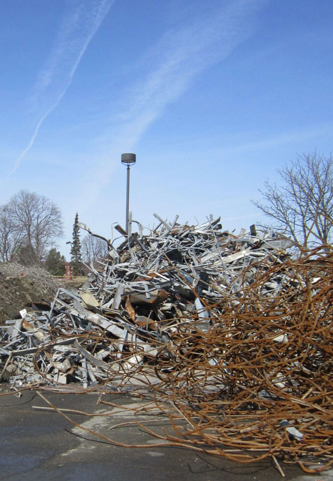 The huge Sir John Carling Building located on the edge of the Experimental Farm is being demolished, and they are being very meticulous about it. Various materials are sorted into piles of debris in what was once a vast parking lot. It’s all visually stunning, so early on day 4 of my 30 Days of Biking adventure I biked over there and took photos.
