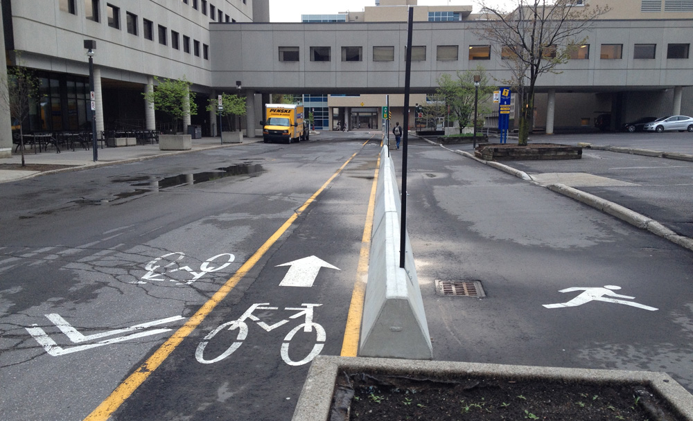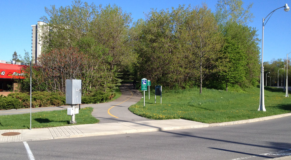 Montclair can be a pretty busy street with fast moving cars, but there is a bike lane that takes you to the path that accesses the Ruisseau de la Brasserie Pathway.