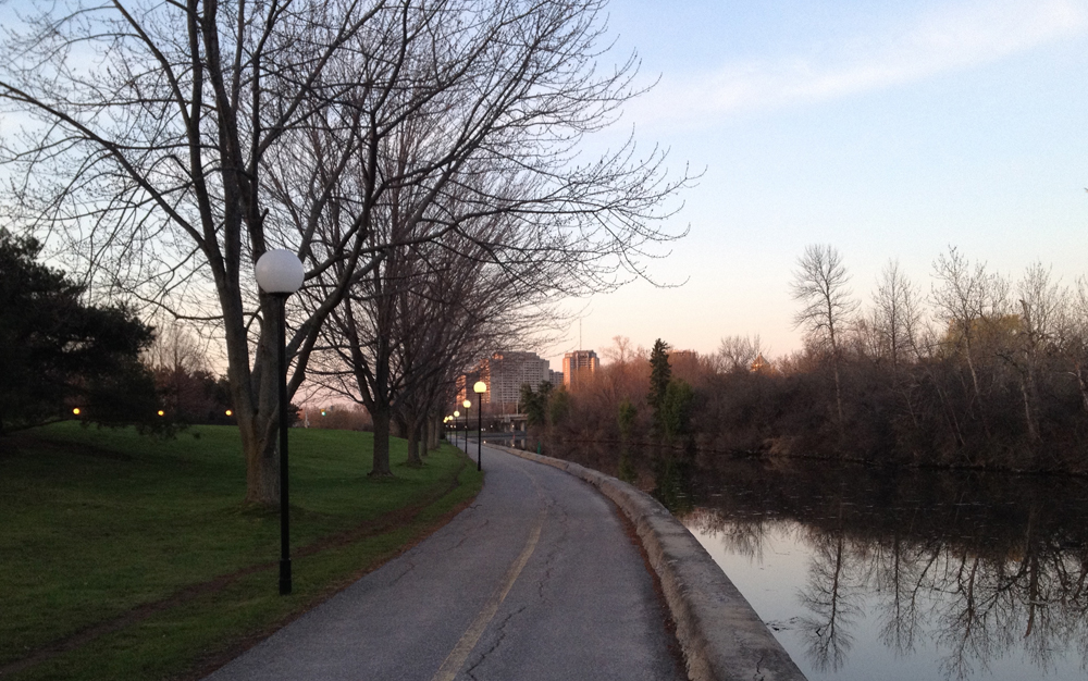 Around the other side of the lake, just beyond the parking lot, I turned left onto the Gatineau River Pathway.