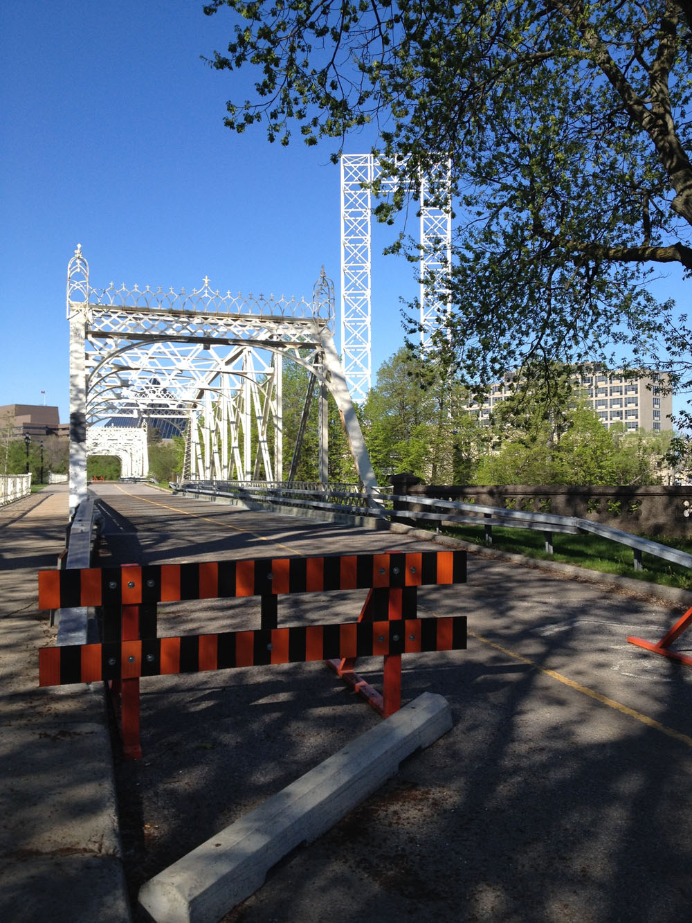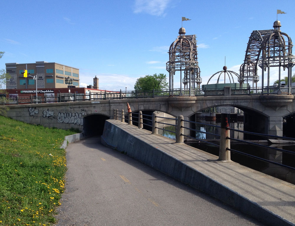 The path takes a short detour around construction just in front of Théâtre de L’Île. It’s a short detour around the parking and over the canal bridge. Once on the other side of the bridge I turned right onto Rue Taylor which hugs the side of the stream, eventually becoming the Ruisseau-de-la-brasserie Pathway at it’s northern end once again.