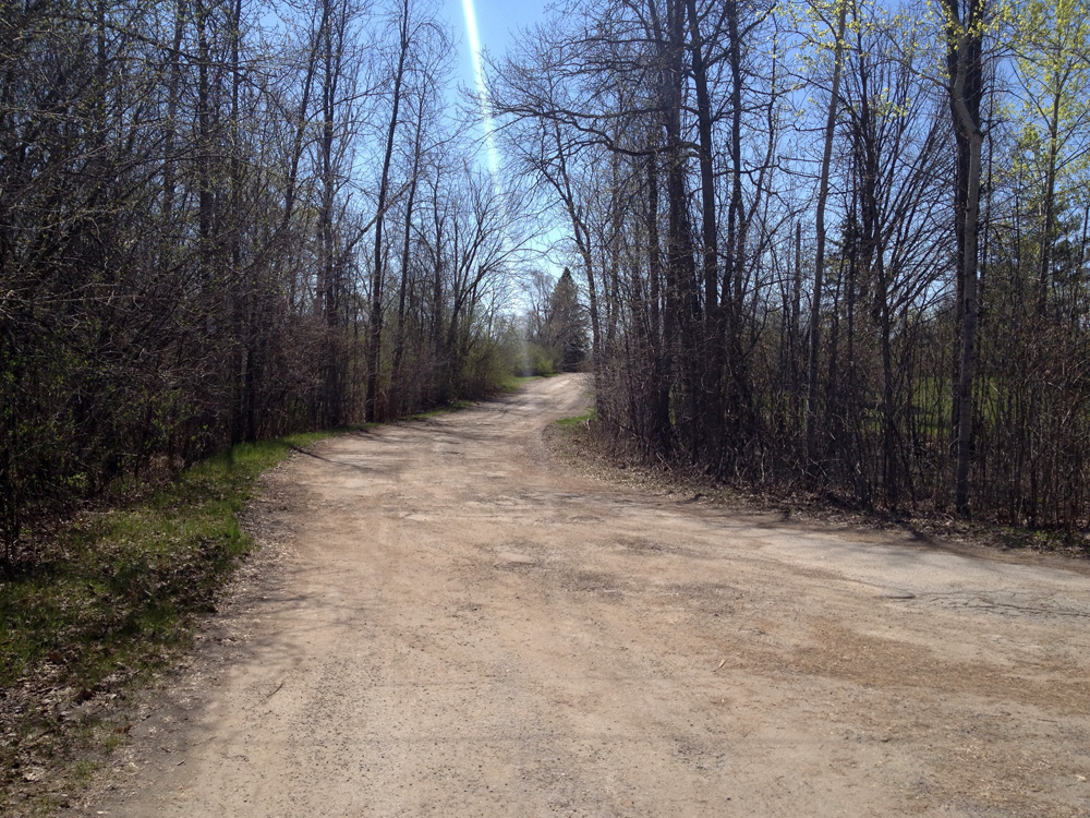 Before going any further I would like to pause and contemplate this little wooden bridge, which I have come to call The Little Bridge From Hell! You see, the last time I rode over it I crashed, resulting in a meniscal tear in my knee, sidelining me for a good chunk of last Fall. A light drizzle had fallen that morning making the wooden surface very slippery. Heading back over the bridge in the opposite direction, the path suddenly turns to the right. one’s instinct is to start to turn while still on the bridge, as suggested by the tire tracks in the image below. When I did so my tires slipped right out from under me. As I put my right leg out to brace my fall my foot slipped uncontrollably in the opposite direction, bringing all my weight down on my knee. Thus the injury. SO, hard lesson learned, if it’s raining or frosty, go very slowly over this innocent looking little bridge and don’t start to turn until you reach the asphalt on the other side.