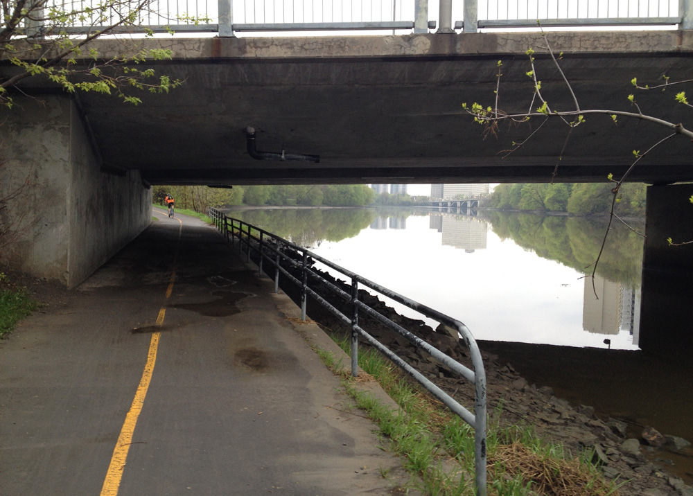 I turned left off the path onto bumpy Commissioner St, which leads to the Ottawa River Pathway which continues under Wellington St.
