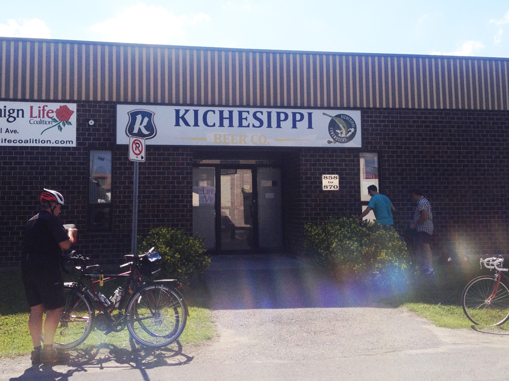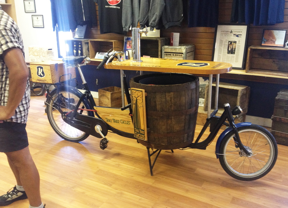 We then rode under the Queensway along Clyde into a small industrial park where lives the Kichesippi Beer Company. We missed their 2 o’clock tour, as we were quite a bit behind schedule, but both Glenn and Giacomo had already toured the place. Suffice to say, they do give tours to those interested. They also have a custom built bike on display that can be used to serve beer on tap. Bravo!