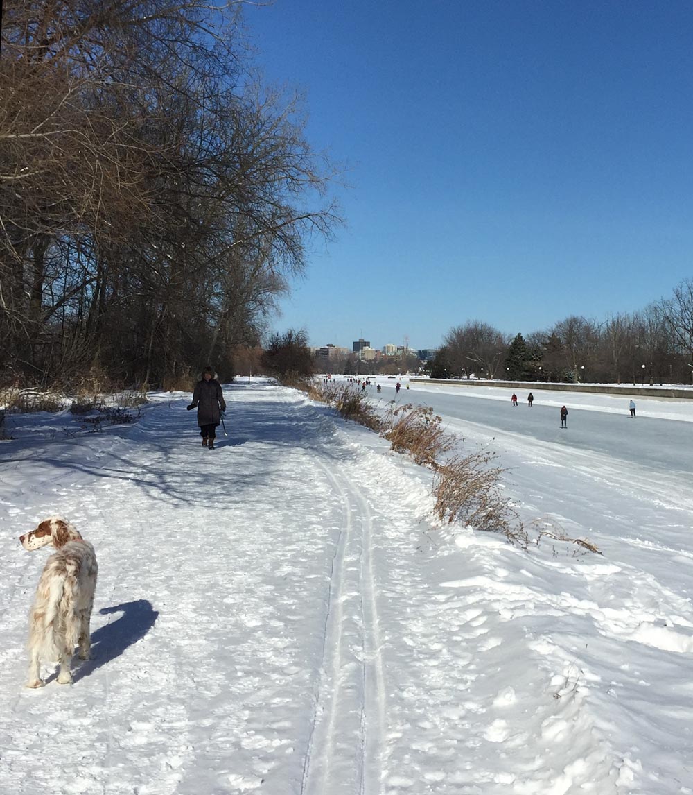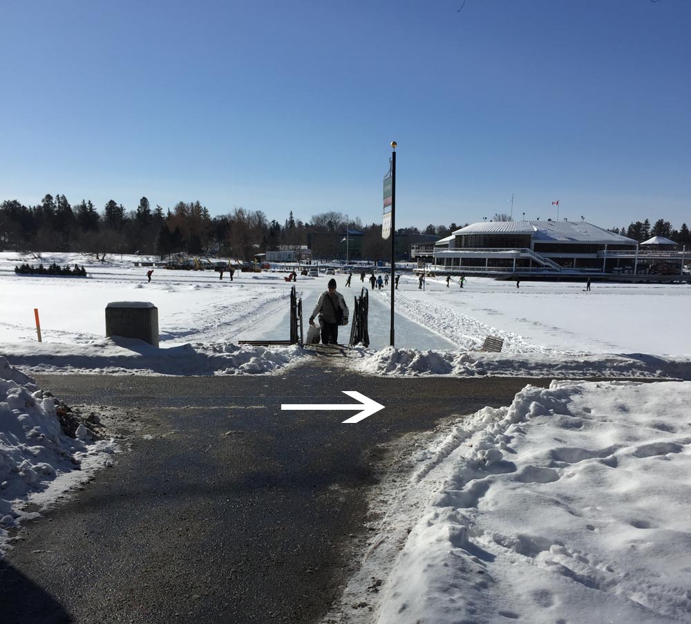 There aren’t any traffic signals to help get across the Driveway to the Rideau Canal Western Pathway so watch out as drivers tend to speed along this stretch. It’s a much calmer crossing on Winterlude weekends when they close the Driveway for all vehicles except OC Transpo shuttle buses.