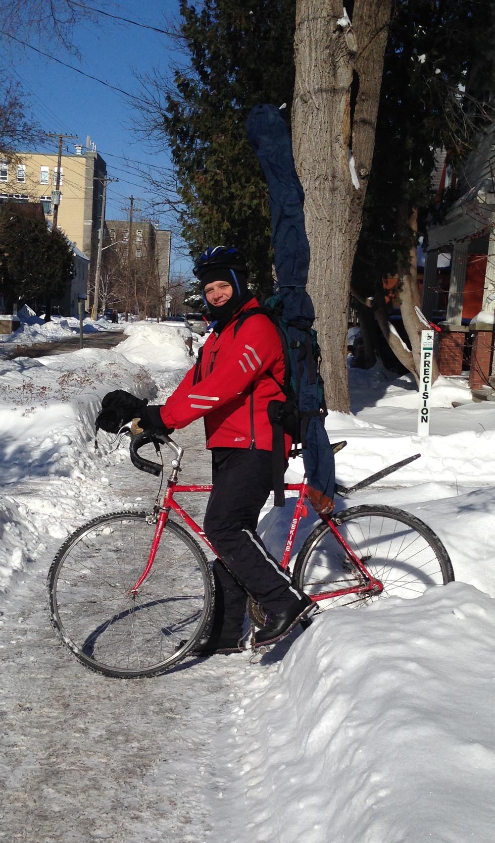 I then locked my bike to this sign post a short distance further along the path, right where the groomed trail passes by. I’ve found this to be a fine spot to access the Arboretum to go skiing, even without a machine groomed trail as most often another skier has already arrived ahead of me, although early one morning after a big snowfall my daughter and I took the lead and broke trail, which can be exciting too.