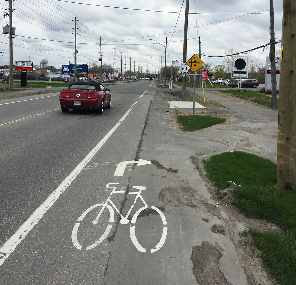 Previous Image Next Image Lane beyond labrie Bike lane veering right slightly to become a segregated lane, just beyond Labrie Ave.