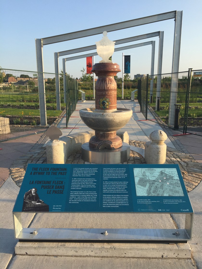 On the Southwest corner of Booth and Sir John A MacDonald (SJAM) Parkway, across the street from the War Museum, sits an interpretive display on the history of Lebreton Flats. A heritage, non-functioning, public fountain acts as it’s introductory focal point. The original working fountain was commissioned in part by Ahearn himself in tribute to his mother-in-law Lilias Fleck, and was re-discovered when the soil in Lebreton Flats was being de-contaminated in the 2010’s. Further within this interpretive exhibit are two panels that touch on Ahearn and his many exploits. Lebreton Flats is where Thomas’ adventures began!