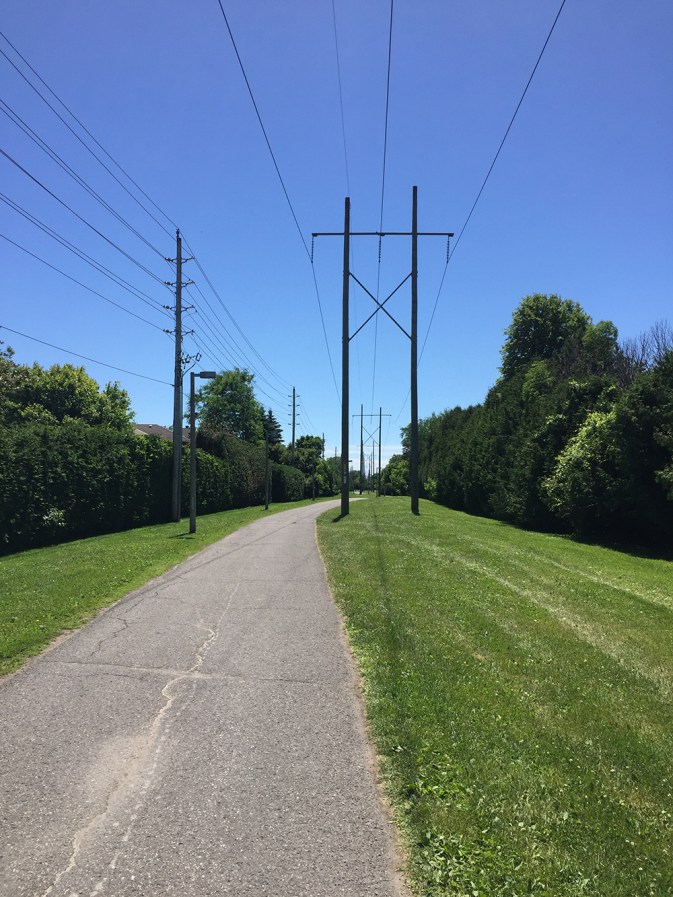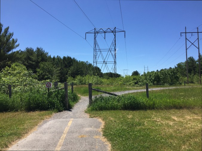 This section of path weaves it’s way through a wooded area before crossing McClellan Road, and then follows power lines all the way to Bruce Pit.