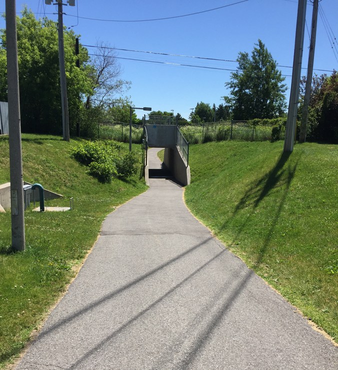 The path curves down hill, at the bottom of which I took the exit that heads across the Transitway.