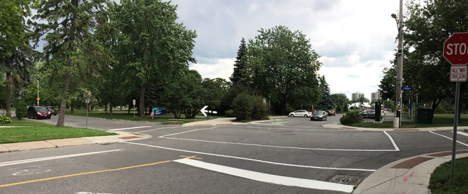 Continue down to the signalised crossing at Colonel By Drive and ride under the transitway and up along the winding path to the Ottawa U campus.