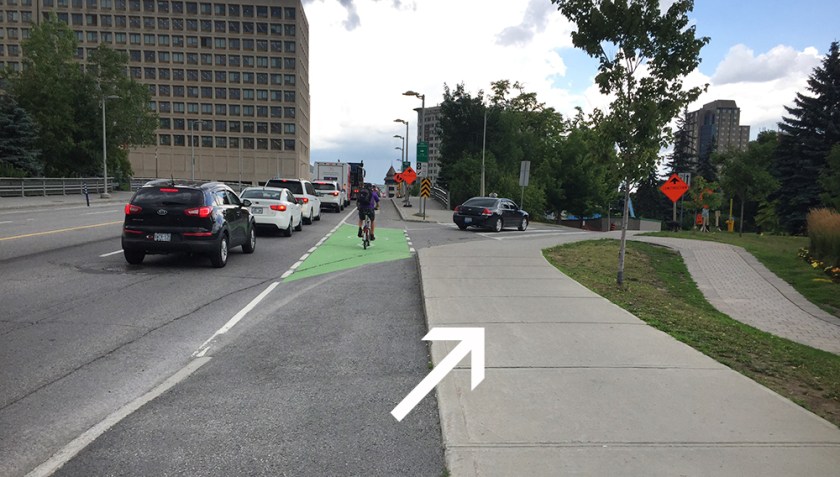 Exit off Laurier Bike Lane before going over the bridge.