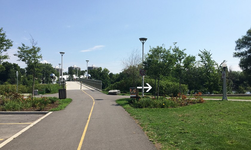 Turning right along the Rideau River Western Pathway