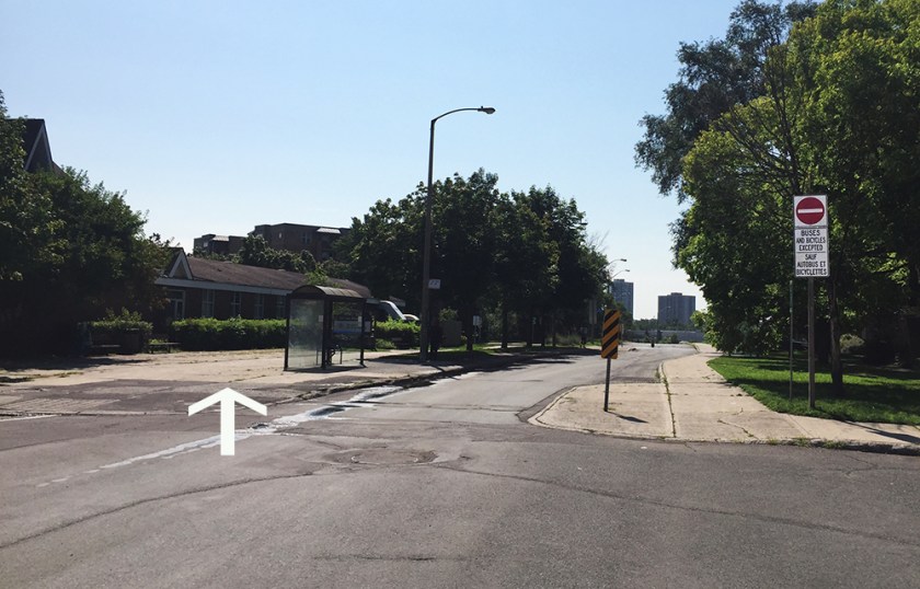 Up onto the sidewalk at after crossing Wiggins