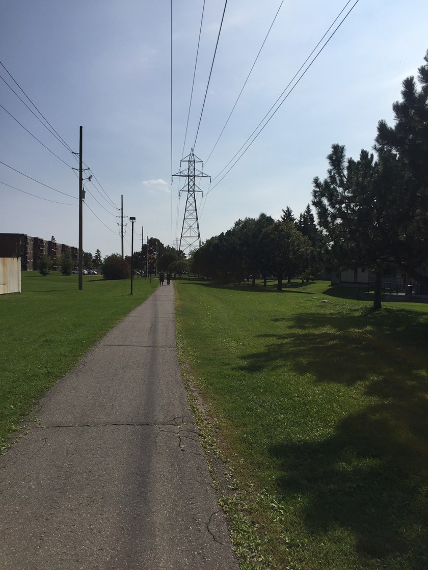 On the other side of the Queensway there are a series of connecting paths you can follow all the way to Innes Road. The paths aren’t perfectly allinged at a few street crossings but they all follow the line of hydro towers so you can’t get lost.