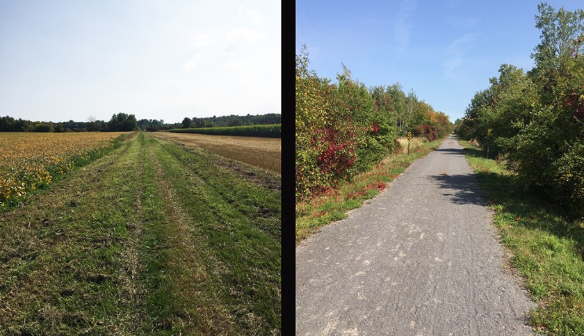 Eventually this path meets the Prescott-Russell Trail. Turn left onto the trail.