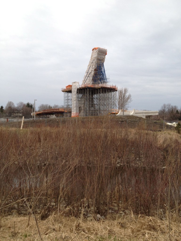 Path over the Aviation Parkway in construction.