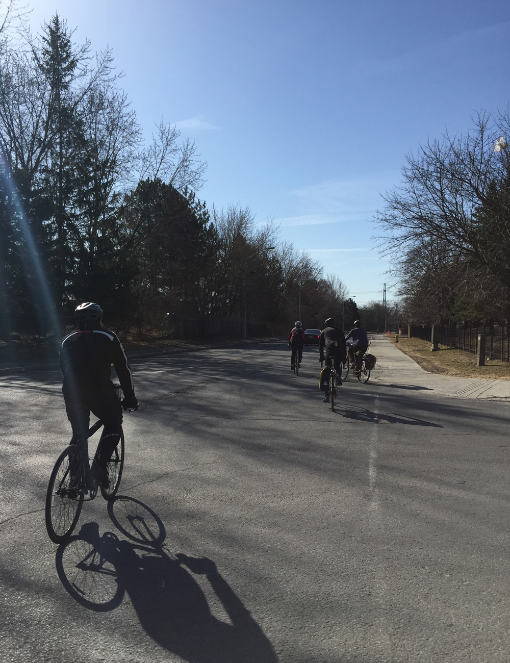 After riding down Longfields and crossing the Jock River we joined a gravel path that weaves it’s way in and through varied wooded areas along the shore the river. This path went under Prince Of Wales Drive and then continued along the Rideau River. We had to contend with a few remaining minor slushy and icy patches along the path but that just added to the sense of adventure.