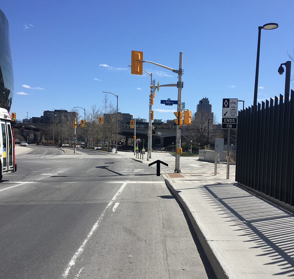 Transition from the bike lane where it ends at Colonel By Drive to the Rideau Canal Pathway