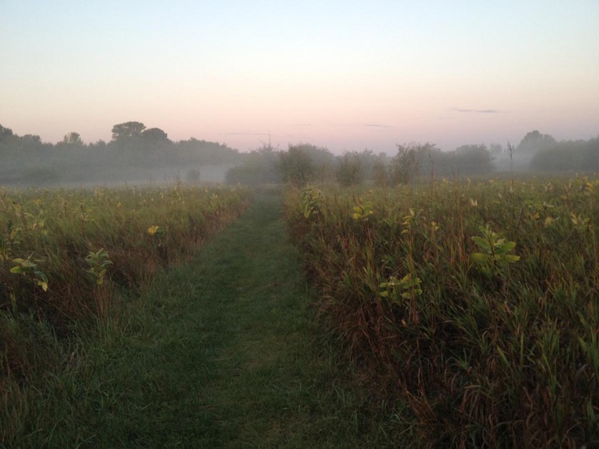 I then joined the Greenbelt Trail. As I biked into the toboggan hill parking lot where it crosses the path, I surprised a couple as they rushed to pull up their pants and jump in their car. Awkward. A bit further on, the path wove through a great big field of tenacious wild flowers holding on through the dying days of summer.