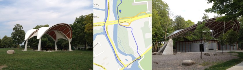 This path meanders along the river through Vincent Massy Park. On a warm summers evening the park is filled with families pic-nicking around the many tables and bbq’s. The design of this elegant service pavilion and canopy allow for rain water to be channeled off the roof into undergrounds cisterns, minimizing reliance on the municipal water supply.