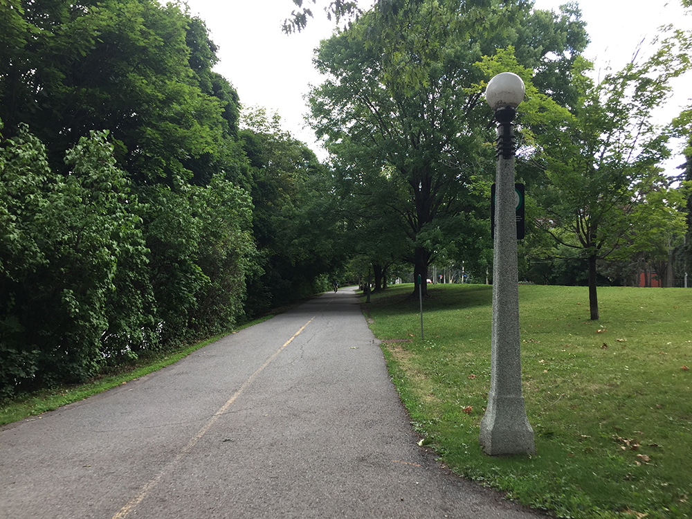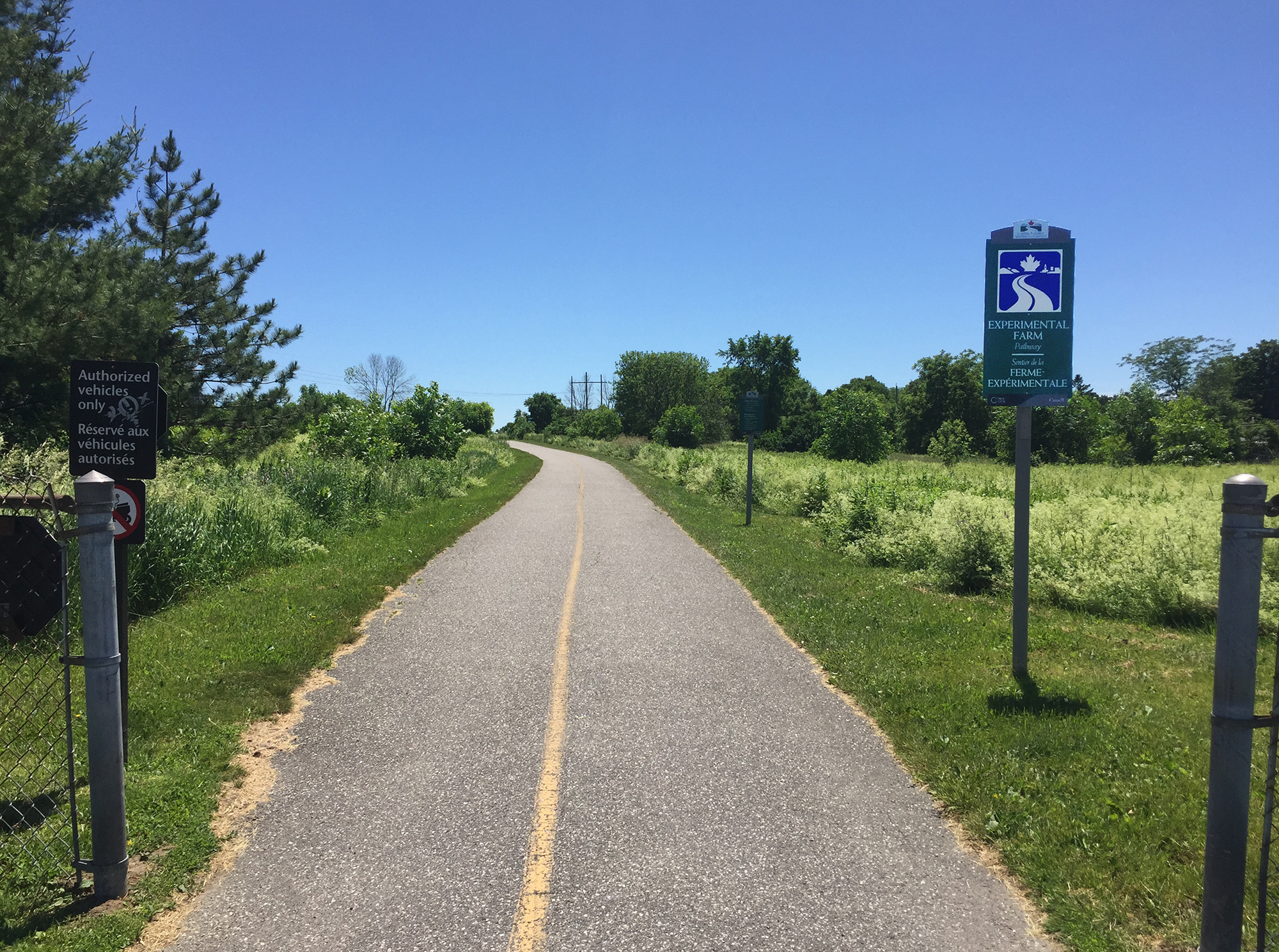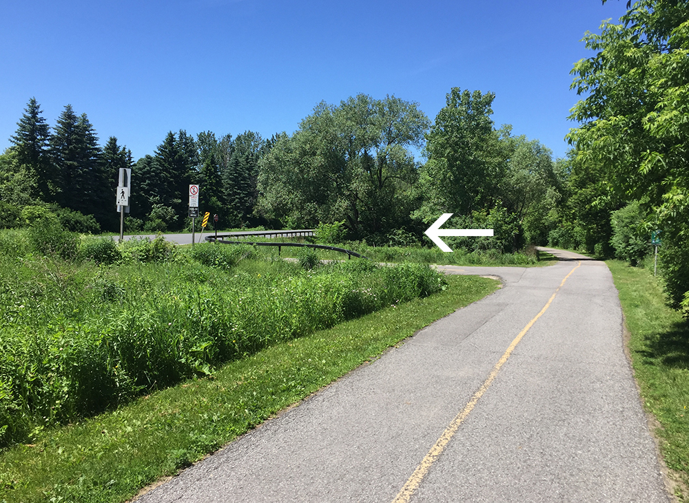 To get to the next box our route unfortunately follows McCarthy Road, which cars like to speed along. What used to be a paved shoulder usable as a bike path at least through the section through the hydro-wires, has now been filled with concrete meridians for what must only be to discourage bikes – completely absurd! So, ride on the sidewalk if you must to be safe. Once across Walkley Road you are good.